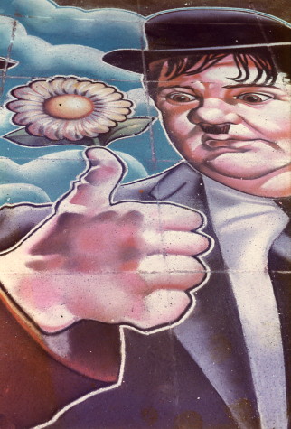 (detail) Laurel and Hardy - 144" X 120" - chalk on pavement - Sheffield - 1985