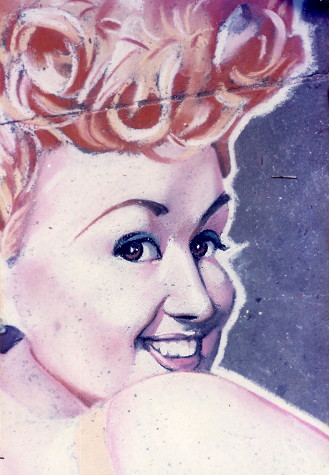 (detail) Betty Grable - 60" X 156" - chalk on pavement - Morecambe - 1984