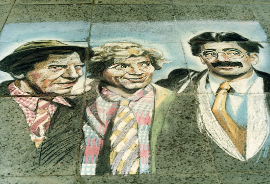 (rained off) The Marx Bro's - 72" X 60" - chalk on pavement - Blackpool - 1984