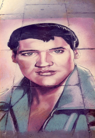 Elvis - 60" X 72" - chalk on pavement - Morecambe - 1984