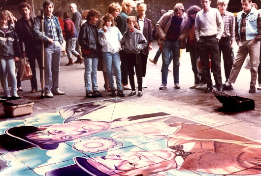 Laurel and Hardy - 144" X 120" - chalk on pavement - Sheffield - 1985